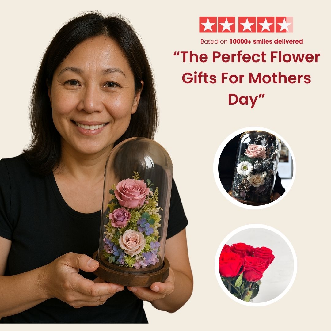 Introducing the "Hazel Roses" – an enchanting masterpiece that combines the timeless beauty of preserved flowers with the elegance of a large glass dome. This is suitable as a home decor or gift for a loved one as the vibrant colours in the arrangement...- $170.00