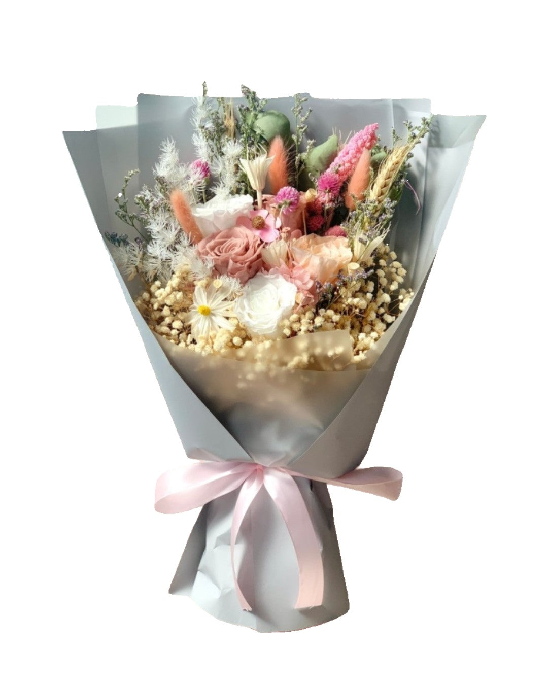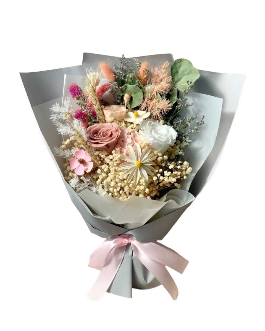 All our flowers have been carefully selected and preserved with non-toxic chemicals to ensure their beauty and durability. Learn more about preserved flowers here.